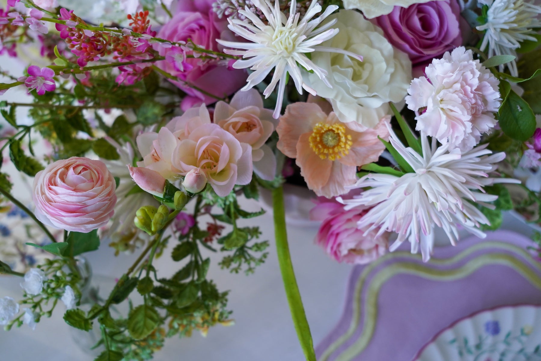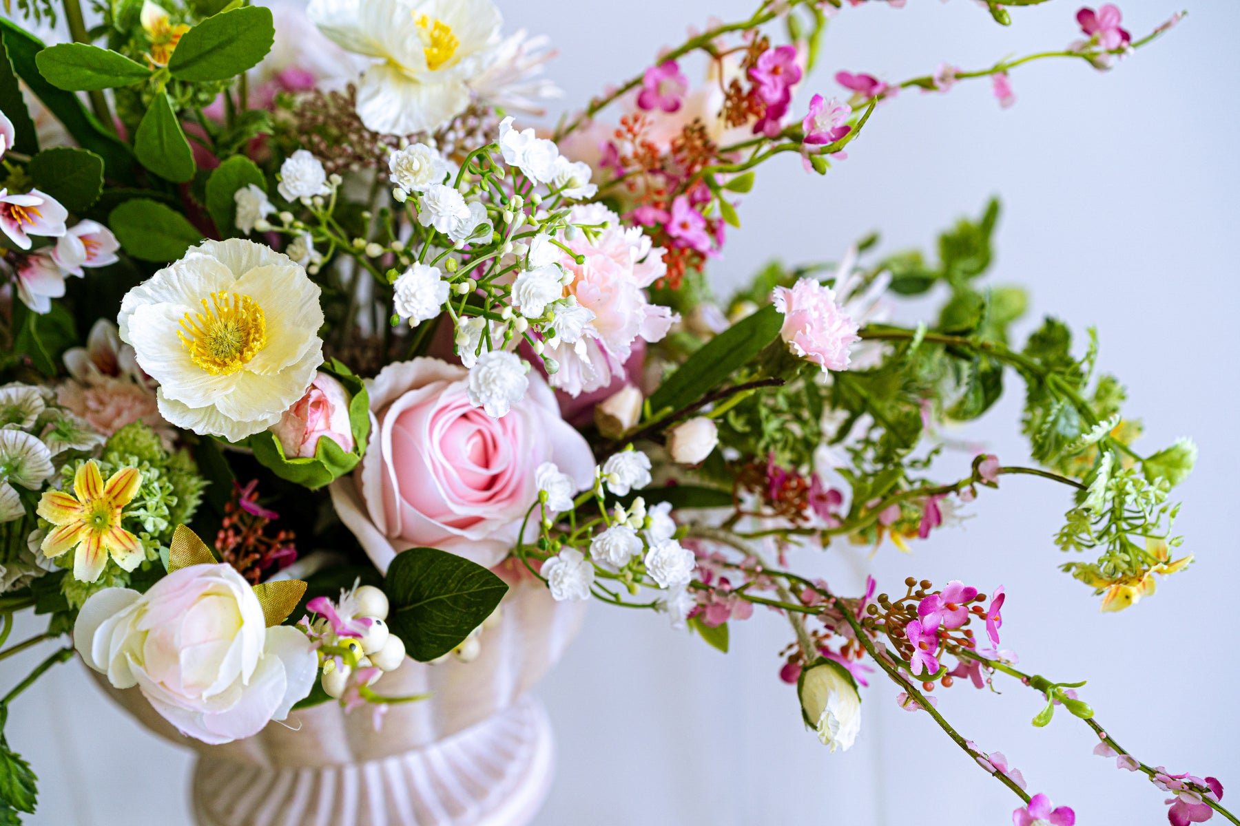• Zero upkeep: real-touch faux florals, season-perfect all year