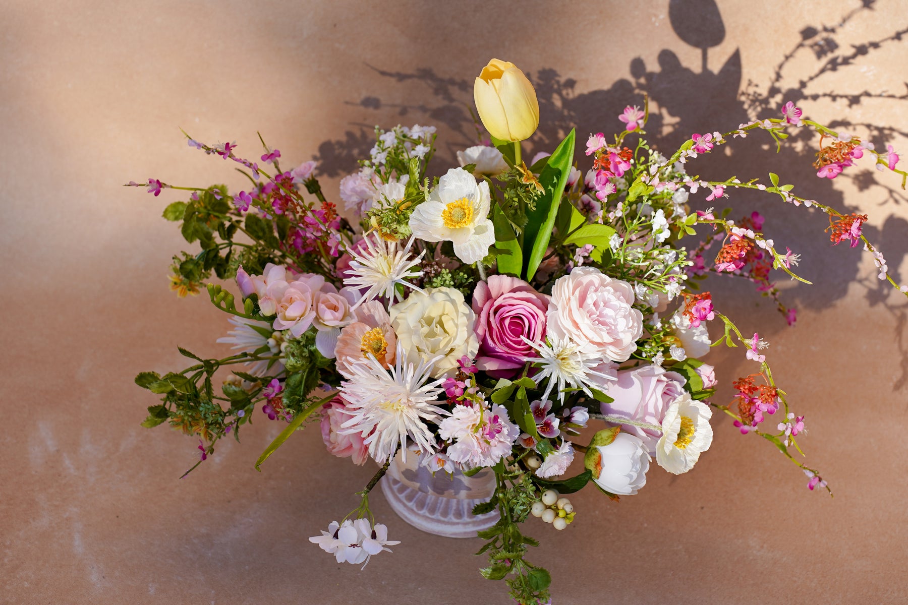 California’s wildflower season—sun-kissed hills, tiny bursts of color, air that feels new. This arrangement is our tribute: a soft, joyful chorus that brings spring’s lightness indoors.